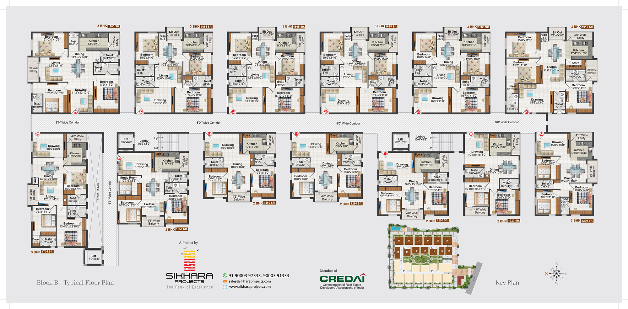 This 6 - storied marvel is many things to different people. The youth love the large open spaces, The kids just love the greenery in the parks, couples search for a solitary corner are happy they are able to find their own. The common amenities are well developed. The internal roads are properly maintained. Rainwater is saved in a specially made spacious underground cellar. Every apartment is complete in terms of facilities and construciton. Nature is in full flow.